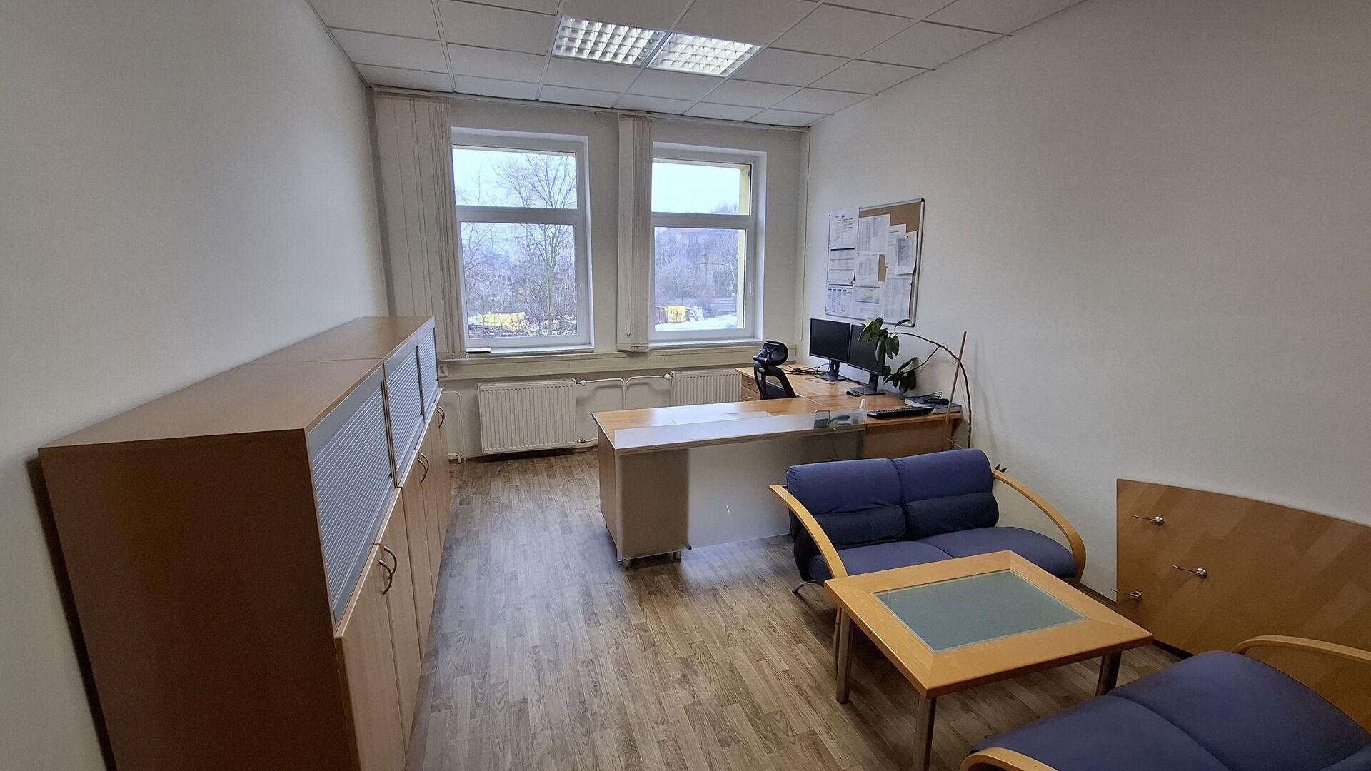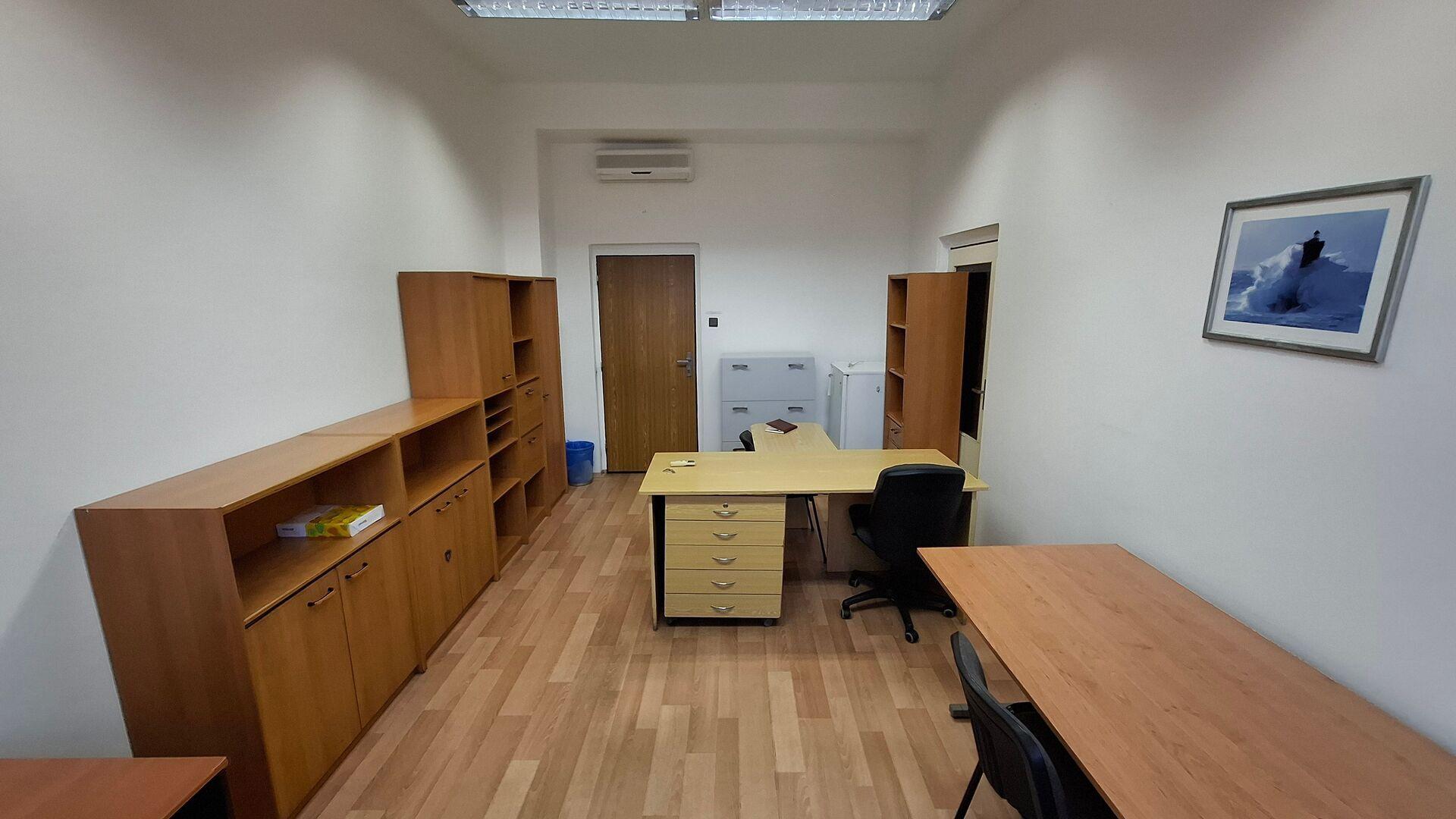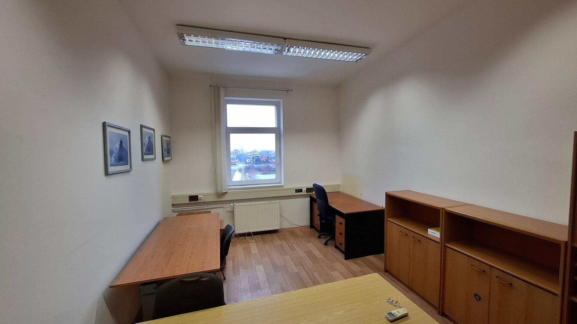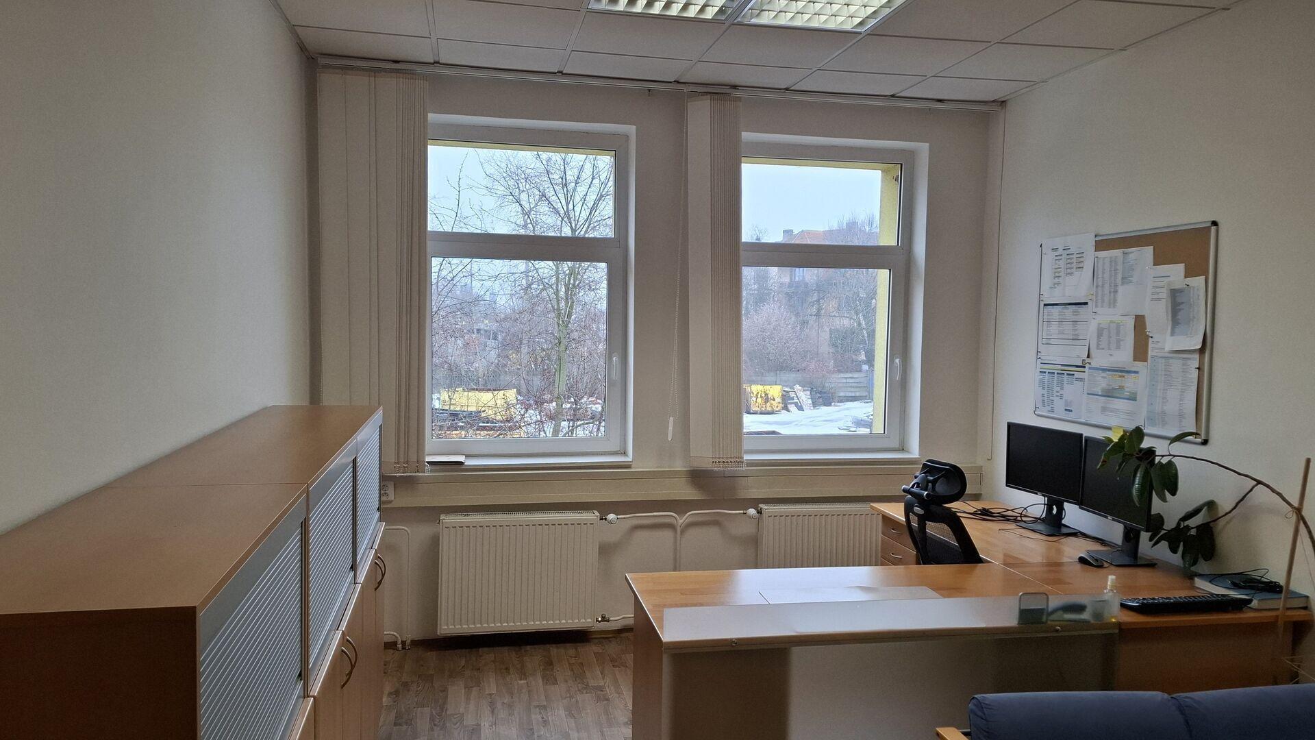 Kanceláře jsou ve velice dobrém technickém stavu. V případě zájmu je v nich možno bezplatně ponechat stávající kancelářské vybavení tak, jak je vidět na fotografiích. Každá z kanceláří má podlahovou plochu cca 20 m2, celková plocha činí 61,5 m2. Kanceláře jsou umístěny v 1. patře budovy. Dvě kanceláře spolu přímo sousedí, nejsou však propojeny. Třetí kancelář je umístěna samostatně na protější straně chodby (viz. schéma). Kanceláře jsou klimatizované.