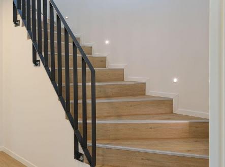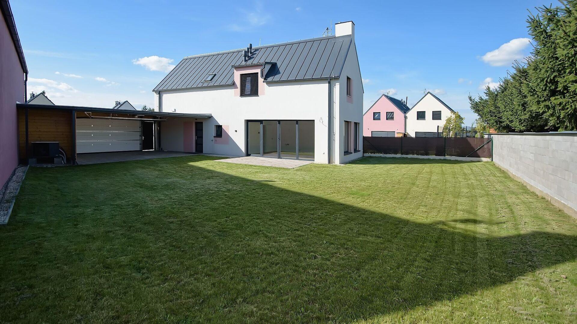 Dům o dvou nadzemních podlažích má zděnou konstrukci se sedlovou střechou. V přízemí najdete velký obývák s jídelním prostorem a plně vybavenou moderní kuchyňskou linkou, hostinský pokoj (pracovnu), koupelnu, WC, technickou místnost a podschodišťový prostor – komoru. V 1. patře jsou pak 3 samostatné pokoje, šatna a druhá koupelna s WC. V podkroví jsou pak k dispozici úložné prostory (pochozí v celé své ploše). Na dům navazuje prostorná dvojgaráž se zahradním skladem. Umístění domu na pozemku a absence oken sousedního domu orientovaných do zahrady skýtá výjimečné soukromí – na zahradu ani do obytných místností není prakticky od nikud vidět.
