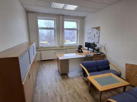 Kanceláře jsou ve velice dobrém technickém stavu. V případě zájmu je v nich možno bezplatně ponechat stávající kancelářské vybavení tak, jak je vidět na fotografiích. Každá z kanceláří má podlahovou plochu cca 20 m2, celková plocha činí cca 40 m2. Kanceláře jsou umístěny v 1. patře budovy. Kanceláře spolu přímo sousedí, nejsou však propojeny. Pronajmout lze v případě zájmu i třetí kancelář, umístěnou samostatně na protější straně chodby (viz. schéma). Kanceláře jsou klimatizované.