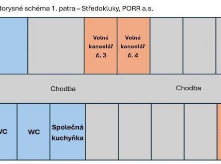 Představujeme vám pronájem 2 samostatných kanceláří, situovaných v administrativní budově v areálu obalovny společnosti PORR, v obci Středokluky (Nové Středokluky), okr. Praha – západ, 2 minuty jízdy autem od dálnice D7, EXIT 3 a 5 minut jízdy autem od hlavního terminálu ruzyňského letiště Václava Havla.